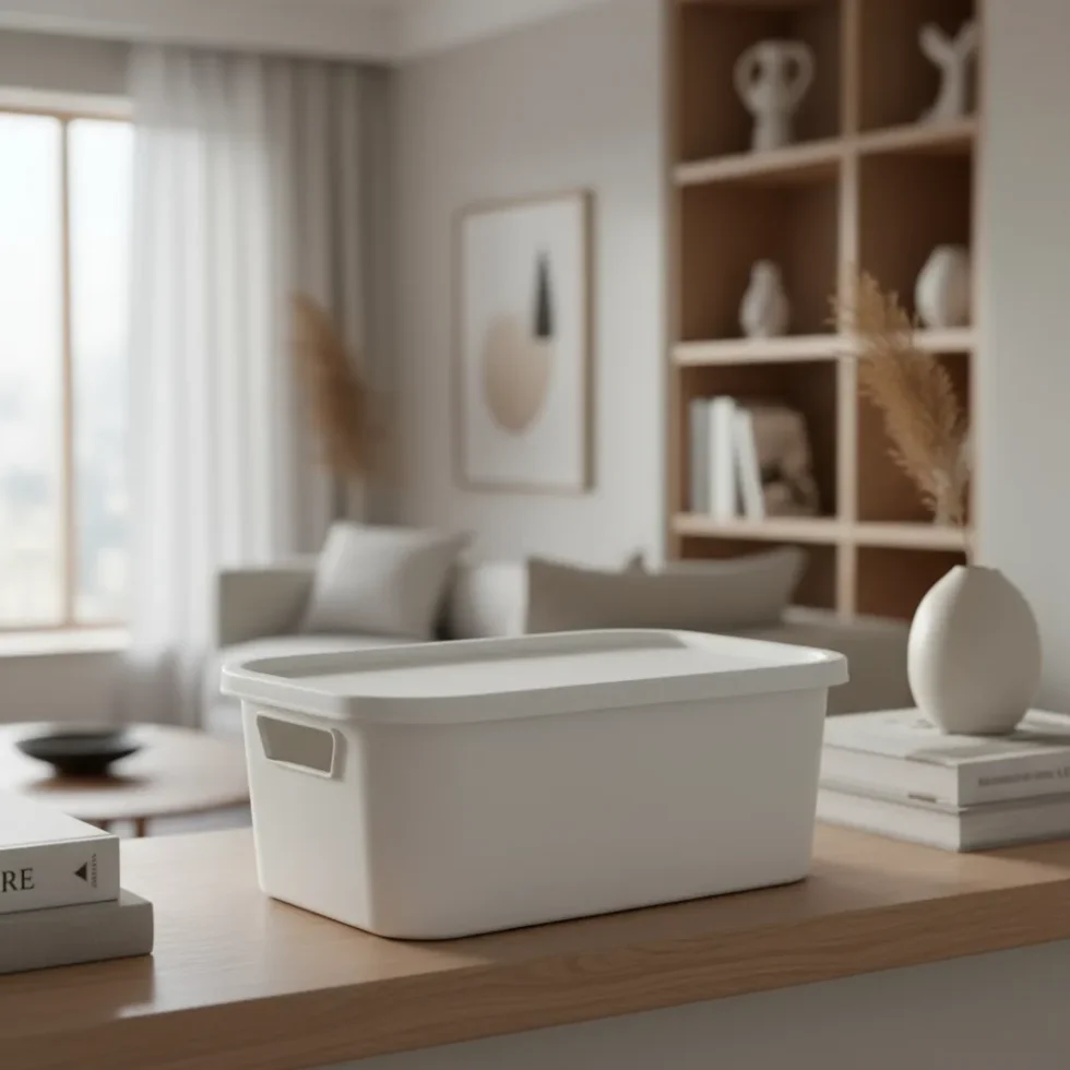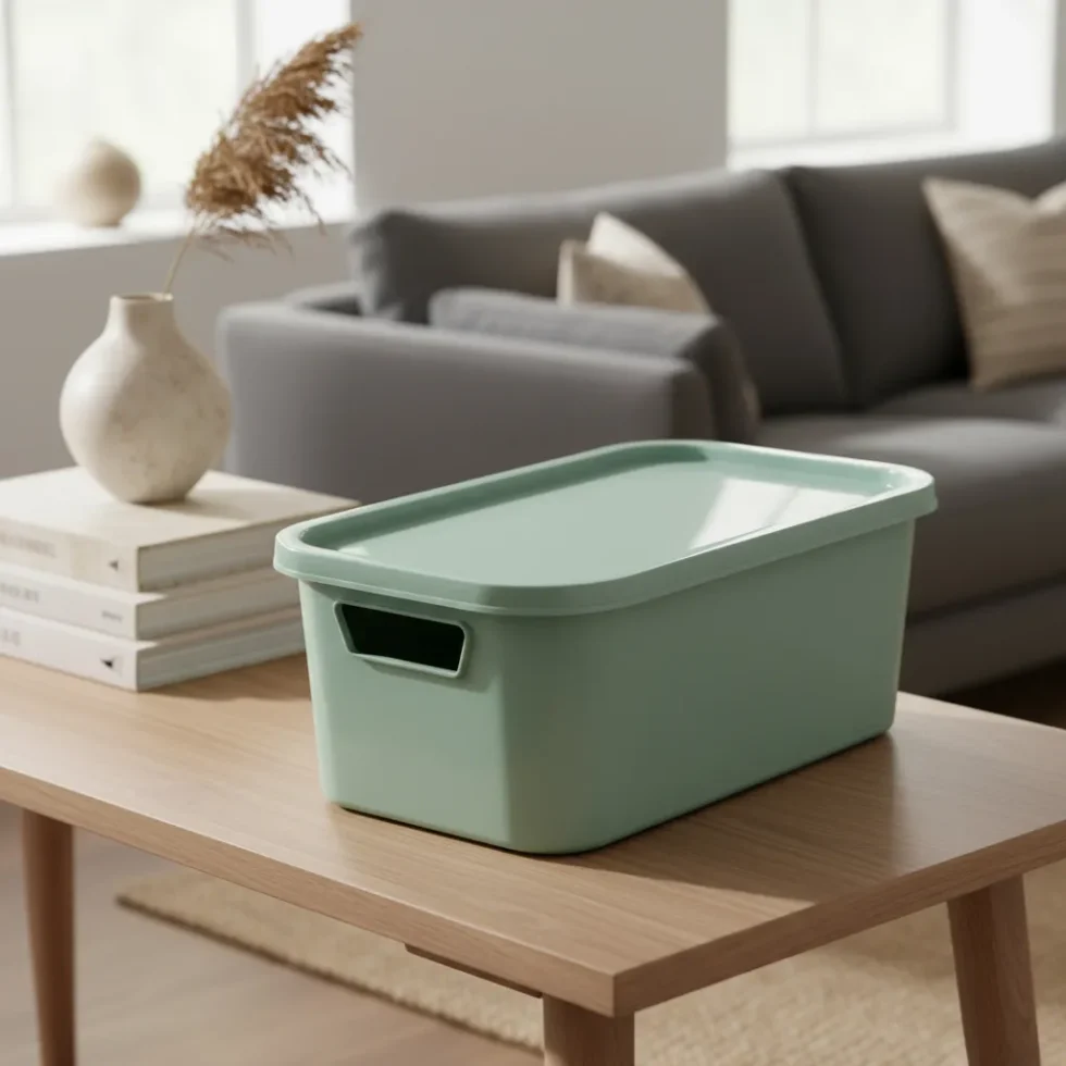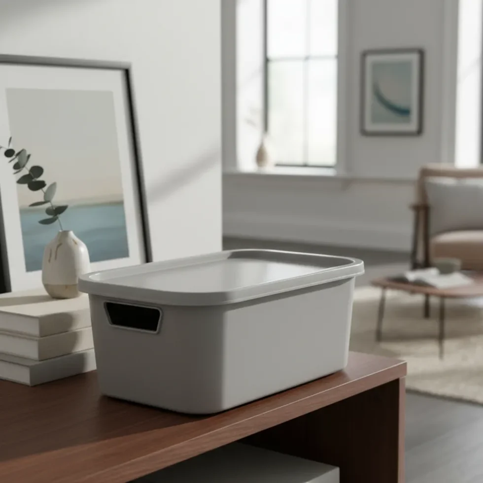 Su diseño funcional incluye una tapa ajustable que protege absolutamente todo del polvo. Pero su verdadera magia está en la optimización del espacio: su estructura firme te permite apilar una caja sobre la otra (con la tapa puesta), construyendo un sistema de guardado vertical que aprovecha cada centímetro.