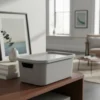 El tamaño justo para organizar tus cajones, estantes o el baño. Esta caja de 32.3cm incluye tapa anti-polvo y es apilable para multiplicar tu espacio de guardado.