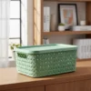 ¡El orden con estilo llegó a tus placares! Canasto símil rattan de 43.5cm ideal para ropa o juguetes. Incluye tapa anti-polvo y es apilable.
