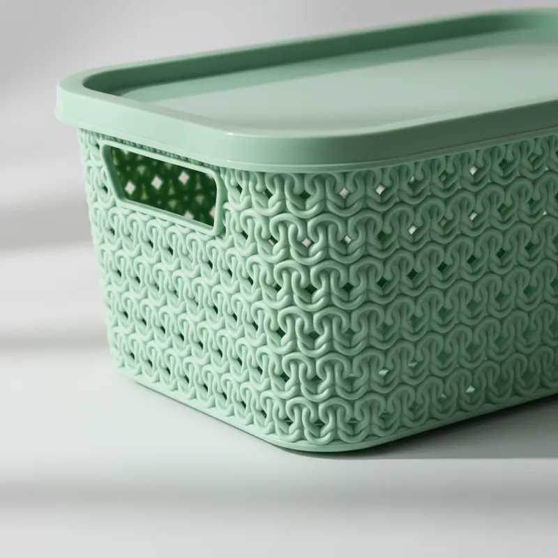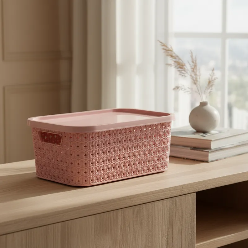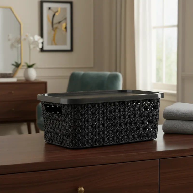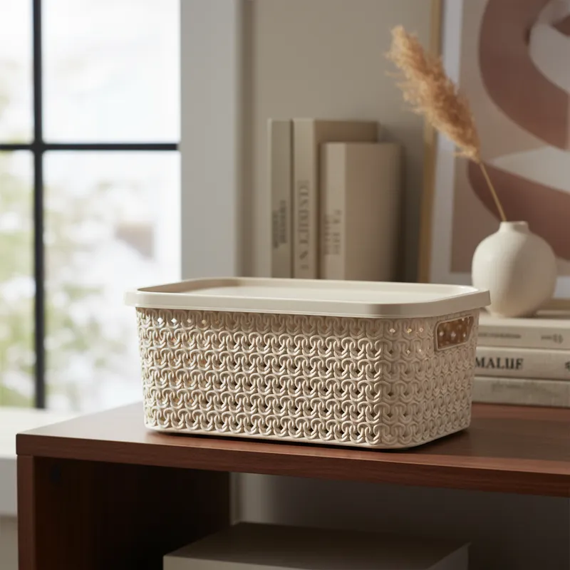 Es la solución ideal para artículos más grandes: guardá ropa de otra temporada, juguetes, mantas o lo que necesites. Su textura símil rattan (canasto) le da un toque de calidez y diseño que la diferencia de cualquier caja plástica, quedando prolija y elegante a la vista.