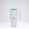 El blanco inmaculado que combina con absolutamente todo. El Vaso Rio en edición Frosty Coconut es la definición de minimalismo elegante. Con sus imponentes 950ml de capacidad, es el compañero definitivo para tu Iced Coffee, licuados o agua helada. Mantiene el frío por horas sin transpirar, entra a la perfección en el posavasos de tu auto e incluye sorbete. Hidratación premium, estética impecable.