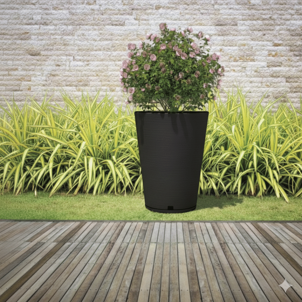 – Diseño Símil Piedra Único: Aporta la robustez y elegancia de la piedra natural, pero con la ligereza y practicidad del polietileno. Una pieza de diseño que realza cualquier rincón.