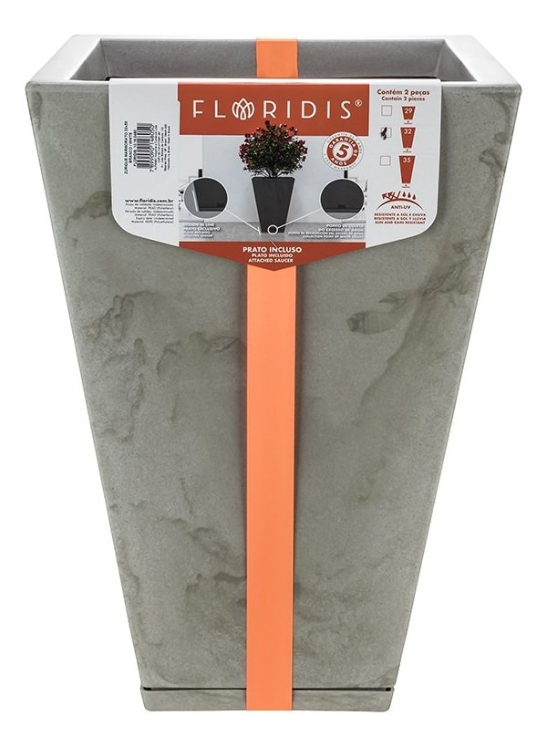 1x Maceta Zurique Piramidal 55cm Textura Símil Mármol.