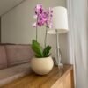 Maceta compacta de 7L con forma de esfera. Textura Sisal única (símil piedra) y Rotomoldeo indestructible. Incluye plato y drenaje, lista para decorar escritorios y estanterías.