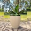 Con sus impresionantes 102 Litros de volumen, esta maceta está pensada para paisajismo en serio. Es ideal para arbustos de gran tamaño, palmeras, olivos o cualquier planta que necesite un hogar permanente y robusto. Su textura Símil Piedra en color Grafito la convierte en la protagonista absoluta de cualquier jardín, terraza o galería.