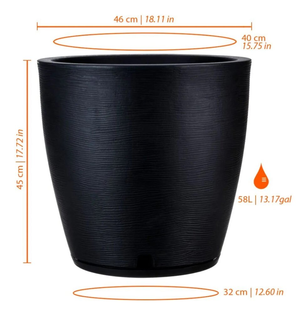 Robusta, ancha y con 58L de capacidad. El lujo del símil mármol blanco en una maceta indestructible (rotomoldeada) para tus plantas más imponentes. Incluye plato a juego.