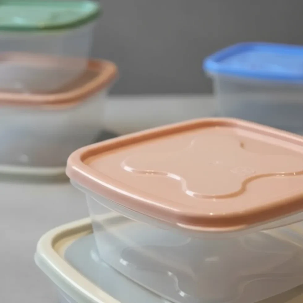 Su diseño cuadrado es perfecto para optimizar el espacio en la heladera, y sus tapas a presión mantienen la frescura y evitan derrames.