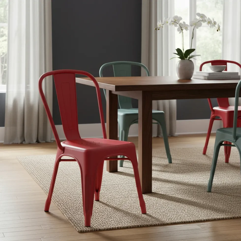 Dale un giro de diseño a tus espacios con el set de sillas Tolix. El icónico estilo industrial ahora en una versión de plástico reforzado, súper resistente y versátil. Son apilables, aptas para interior y exterior, y no requieren armado. La solución perfecta que combina diseño, durabilidad y practicidad.