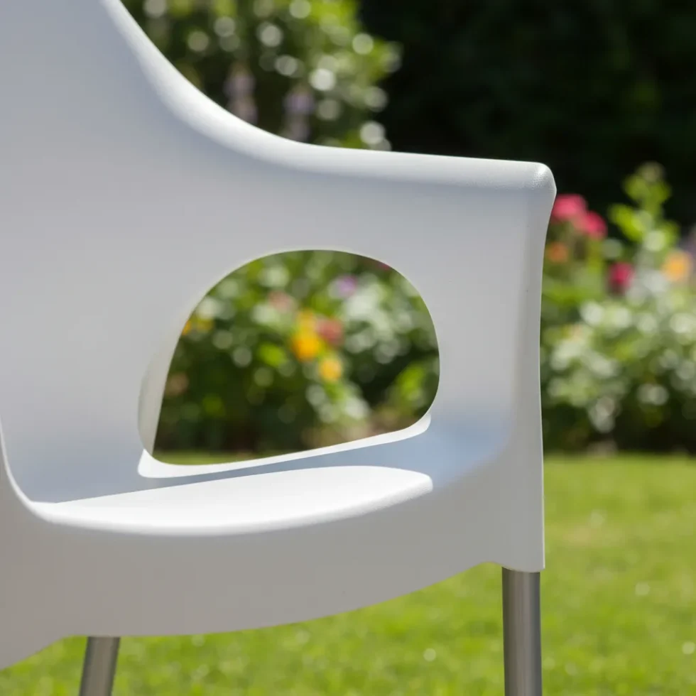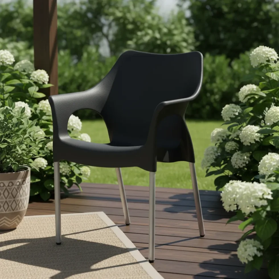 Sentate y relajate sin preocupaciones. El Sillón Rubí te da el confort de un sillón de interior con la resistencia extrema que tu jardín necesita. Soporta 150kg, es ergonómico y apilable.
