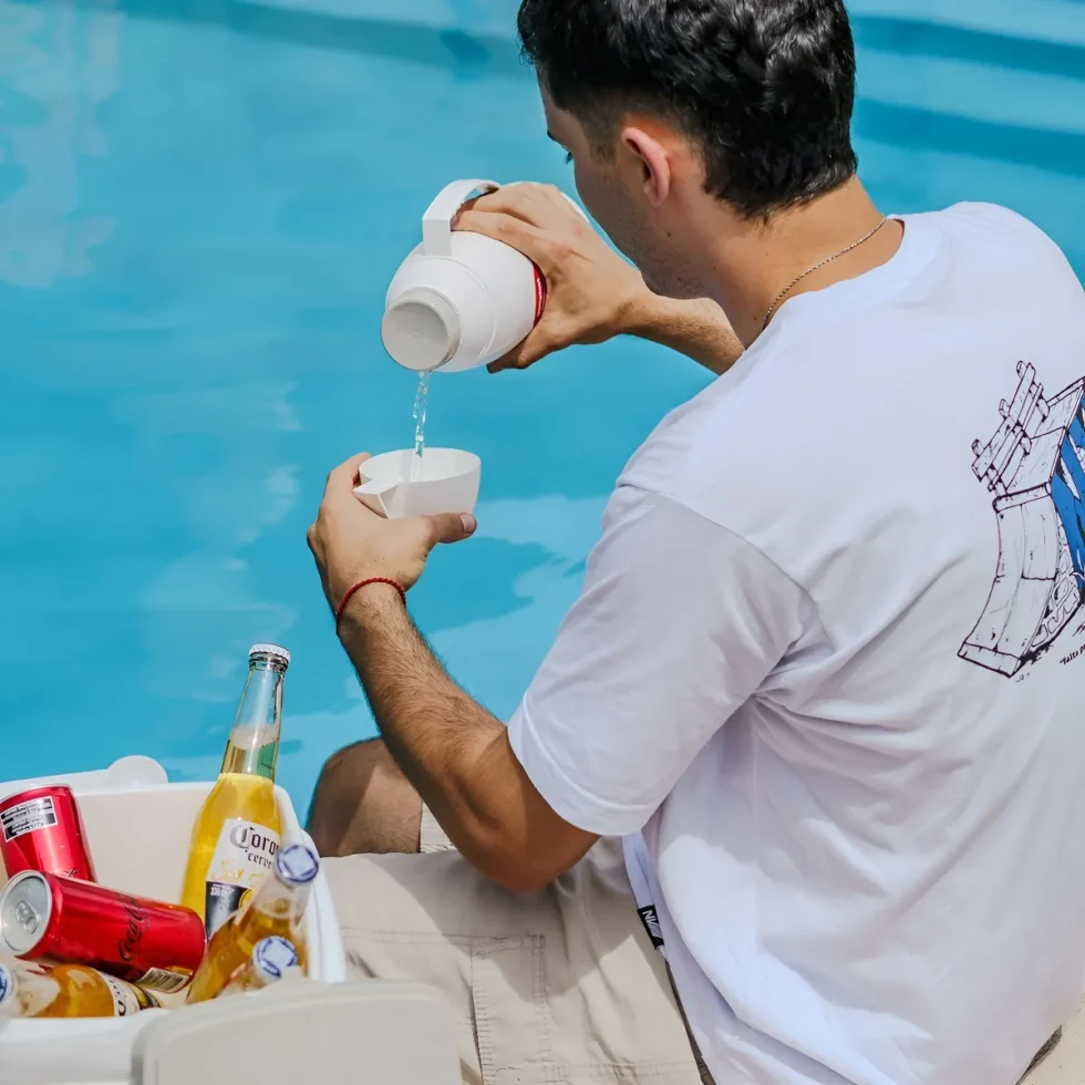 Su diseño es pura funcionalidad. El exterior de plástico resistente lo hace duradero y fácil de transportar. Además, su tapa multifuncional es un golazo: sella el termo perfectamente y, al darla vuelta, se convierte en una pequeña taza para que puedas servirte donde estés.